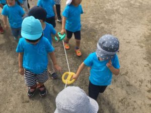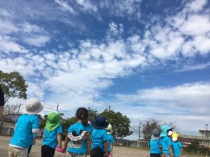 先週は染めTシャツを着て活動をしました。染めTシャツを着るときには、「やった〜!」と嬉しそうな子どもたち♩お家の方と一緒に作った思い入れのあるTシャツを着ることができて満足そうでした!