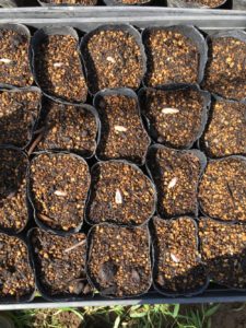 一つは、種が土の表面からポッコリ顔を出す感じで、表面スレスレに植えます。あまり土を被せると芽が地上まで出てくるのに一苦労するらしく、途中であきらめて枯れてしまうみたいなんです。そのため、種は土の表面ギリギリにあります。