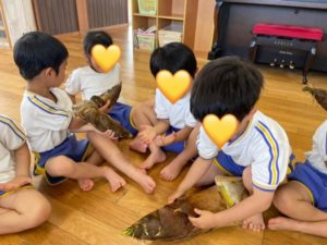 「重た〜い!」「ふわふわしてる!」と感じたことを言葉にしていました(^^)