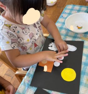 今日は9月の壁面製作をしました。