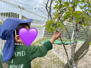 未満児園庭では、シンボルツリーであるさくらんぼに触れたり🍒