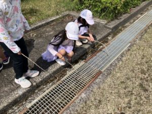拾った枝で魚釣りもしました