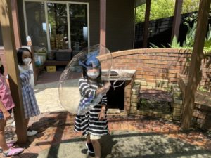 シャボン玉の中に入れるかな~?