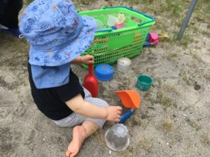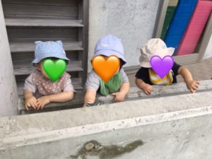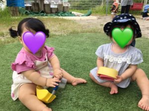 今日は心地の良い風も吹いていたので、未満児園庭に出て遊びました。