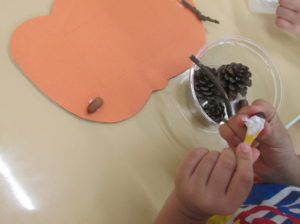 年中さんたちはボンドを使ってどんぐりにぬりぬり~