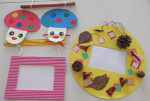 秋の素材を使った写真立てを作っていました(*^▽^*)