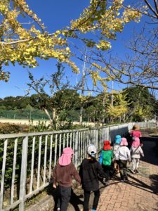 木の葉っぱの色も 黄色に変わってきていて 秋の季節を感じながら 歩いていたこどもたち🍂