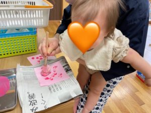 今日は初めての手形スにスタンプとポン筆をしました。