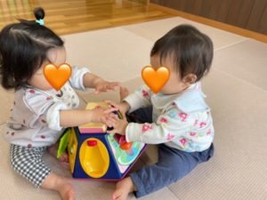 4月に入りゆめ組さんに新しいお友達が来ました。初めての子ども園にはじめは涙涙💧のお友達も、少しずつこども園での生活にも慣れてきて、可愛い笑顔を見せ、お部屋の中を散策したりお友達と一緒におもちゃで遊ぶ姿も見られるようになりました。