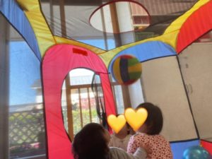 部屋ではテントを出して遊びました。