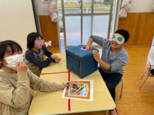 指先の感触だけで当てる活動をしています♪