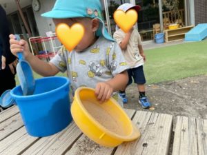 園庭で遊びました。