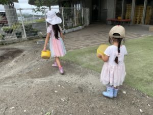 途中で雨が降ってきたので園に戻って