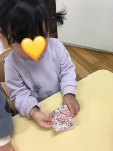 つき組さんは折り紙を半分に♪