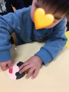 目や口のパーツ貼りをしました!