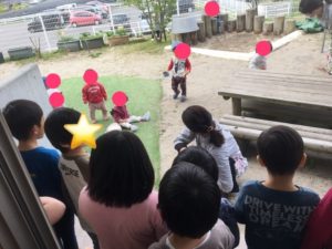 小さいお友達のお部屋に挨拶をしました。「なんでもいってね」「お手伝いするからね!」となんと心強いほし組さん!!