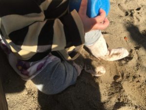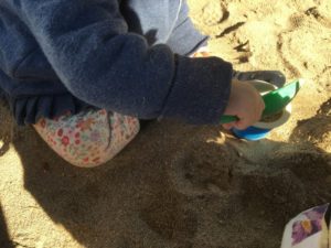 砂場ではカップに砂を入れられるように