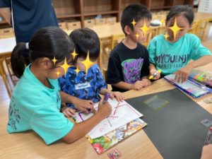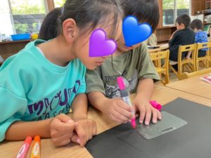 プラバンに名前や絵を描いて