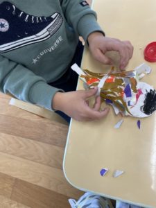 からだは、折り紙をビリビリ破って 貼り付けていきました