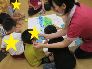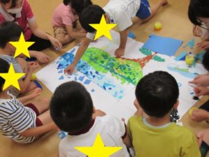 みんなで協力して大きい台紙に