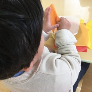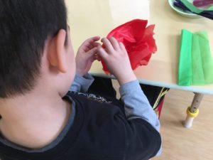 「好きな色の花紙を4枚取ってね」と伝えると、