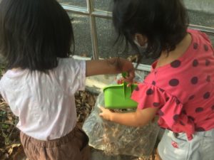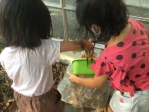 1年生が、うまく袋に入れられない様子を見て、
