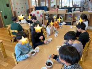 今日のおやつは、ほっかほかのぜんざいでした。