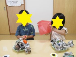 まずは、新聞紙やはながみをクシャっと丸めます!