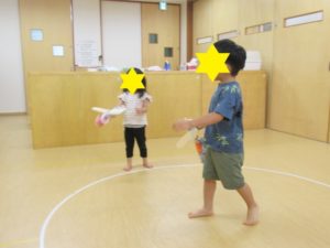 自分で作った作品で遊ぶのも楽しい子どもたちでした😊