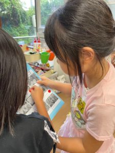 学童にある物の写真を見ながら、