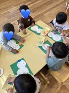 触れ合いを楽しんだ後は雪だるまの制作をしました。