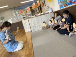 保育者の膝の上に座ってくすぐり遊びをしたり、船を漕ぐわらべうたをしました🚢
