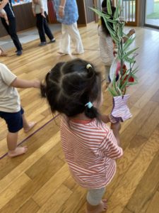 今月は七夕があったので笹の葉を手に持って♩