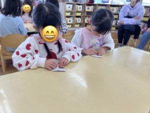 お友達の方を向けて配ることができました👏