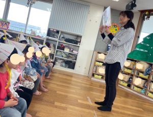 紙芝居を見たり、歌を歌ったり