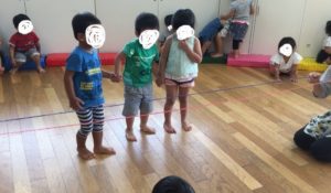そして、今日はゴム遊びをしました。みんなで『いろはにこんぺいとう、えいやっ!』と掛け声をしながらしていきました!お友達の手を引いてくれるとっても優しい姿も見ることができました!