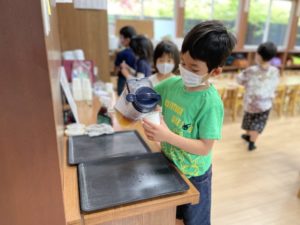 ここ数日、アイロンビーズに取り組んでいた1年生。