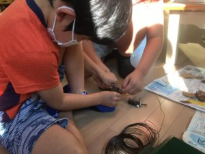 ペンチが得意な一年生男子。お互いに教え合いながら、安全に道具が使えるようになりました✨