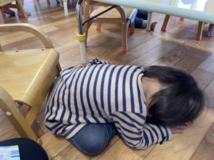地震の時には“ダンゴムシポーズ”!