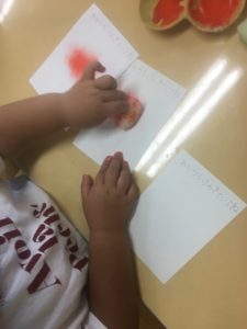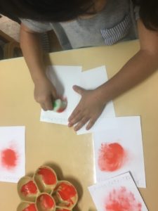 絵の具でのお絵描きは大の得意のかぜ組さん。今度は絵の具でトンボを絵にしましたよ!