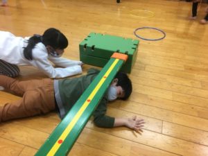 平均台を低く置いてその下を通ったり☆