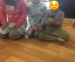 ここからは英語で数を数えながらお友達にバトンパスです。落としてしまわないようにそっとそっと回していきましたよ!