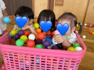 そら組のお部屋でカラーボールで遊んだり