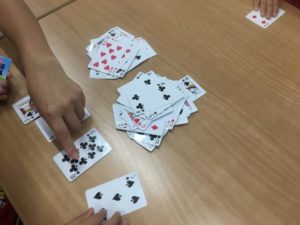 トランプに夢中のこどもたち。