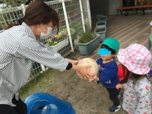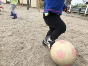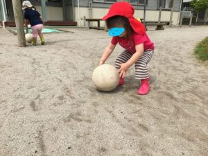 と、大盛り上がりのお友達。保育者からボールを受け取って、園庭に向かいました。