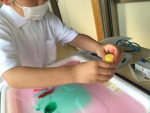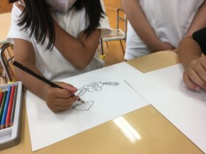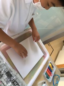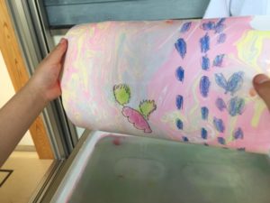 綺麗に絵の背景にマーブリング模様ができました\^^/