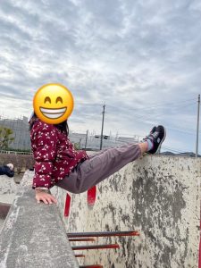 「見て見て〜」とバランスを取ったり