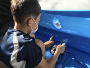 「先生、プールの空気が抜けてきてる」と