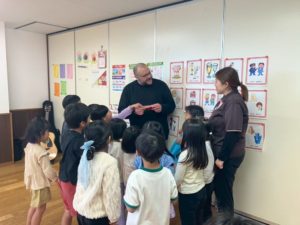 プレゼントは、ロジャー先生の名前のキーホルダーです♪