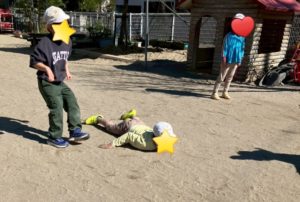 だるまさんが・・・の掛け声で動き出し、